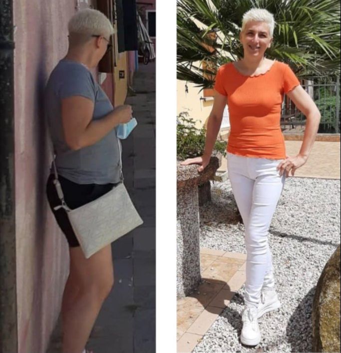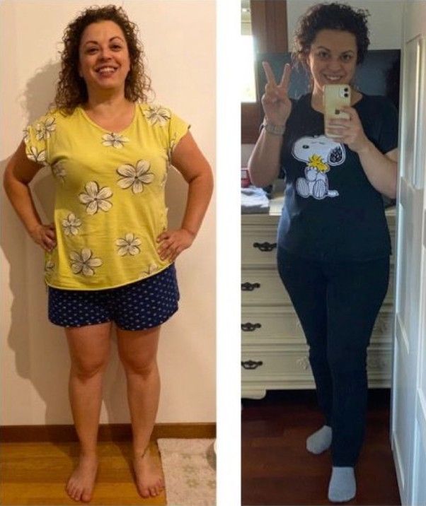 "Sono Maria, grazie a questo percorso ho perso 13 kg, ridotto 8 cm di girovita e 9 cm sui fianchi, scendendo di 2 taglie. Ho risolto il gonfiore addominale e migliorato la regolarità intestinale. Dormo molto meglio e il mio sonno è più riposante. Inoltre, la mia pelle è diventata più luminosa. Oggi mi sento rinata, con più energia e benessere."