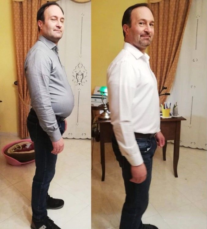 "Sono Raffaele, grazie a questo percorso ho perso 14 kg e ridotto di 2 taglie. Ho notato un significativo miglioramento della mia stanchezza cronica e i mal di testa sono diminuiti notevolmente. Inoltre, i dolori alle gambe e alla schiena sono quasi spariti. Oggi mi sento più energico, leggero e libero dai fastidi che mi affliggevano. La mia qualità di vita è nettamente migliorata."